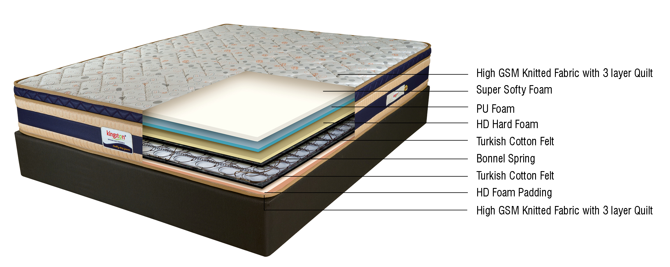 This Eurotop Spring Mattress is designed to give you a plentiful night' rest.Made with Bonnel spring construction and using high density and super softy foam on Eurotop to give more comfortable and durable.It balances your body and keep it well supported during the night, releasing built up tension in muscles and joints.quilted in high GSm knitted fabric is breathable and support air circulation.