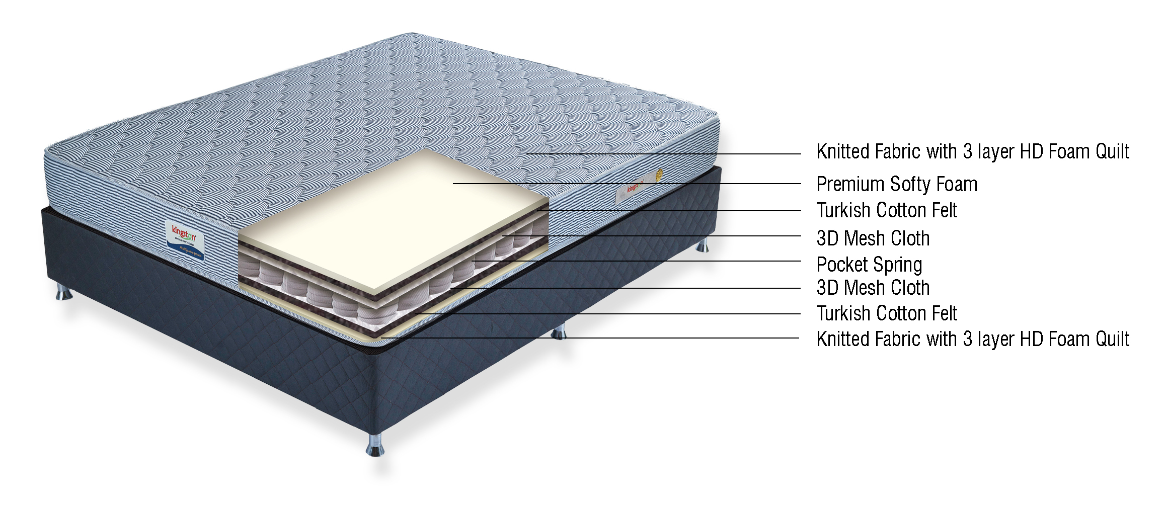 This mattress contains body contouring pocket springs and pressure-relieving foams. The Pocket spring delivers remarkable body support, enhanced airflow, and lasting durability.
